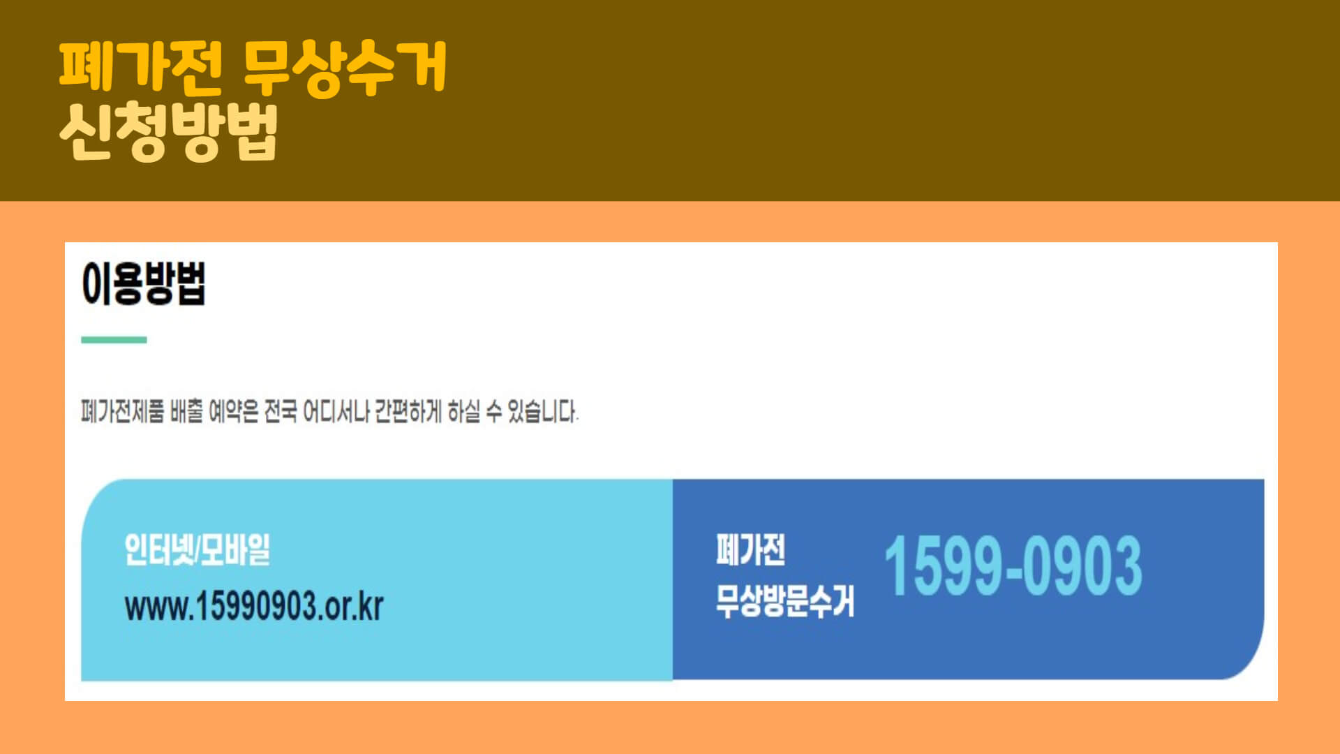 집에서 쓰던 가전제품을 무상으로 수거해 가는 서비스가 있다는 것을 알고 계셨나요? 이 서비스는 가전제품을 집 밖에 내놓고 스티커를 붙이는 등의 번거로움도 없는데요. 환경부와 지방자치단체에서 실시하고 있는 폐가전제품 무상수거 서비스에 대해 자세히 알아보도록 하겠습니다.