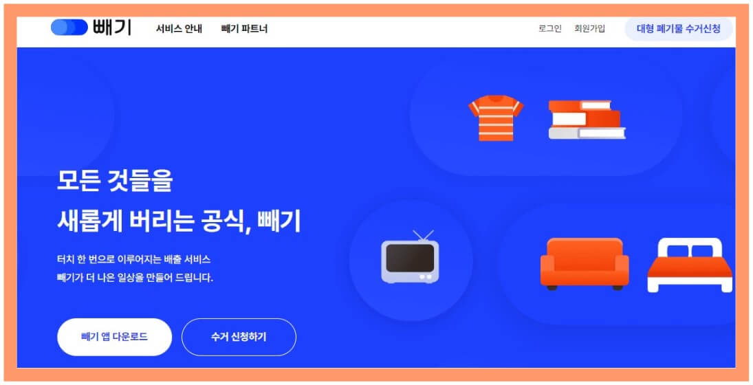 만약 혼자살거나 폐가전의 무게가 많이 나가 외부에 꺼내놓을 수 없다면 "빼기"라는 앱을 통해 일정 수수료를 더 납부 후 물건을 집안에서 수거해 주는 서비스도 있습니다. 빼기 앱에서는 본인 배출 신고도 가능합니다.
