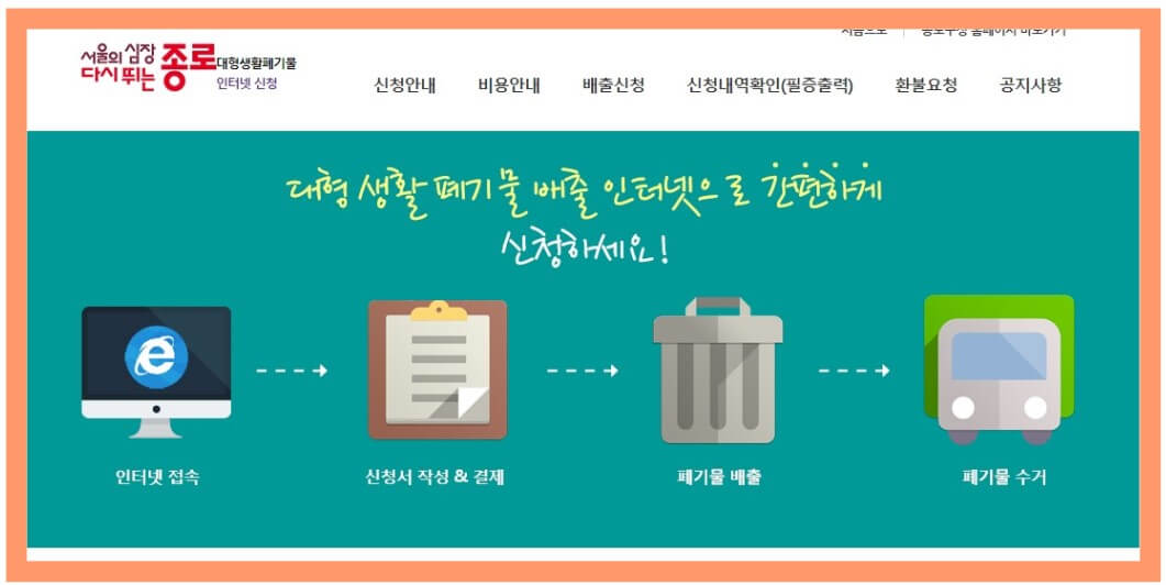 온라인신청은 해당 지자체 대형폐기물 신청 홈페이지에서 수수료 결제 후 해당 장소에 본인이 배출하는 방법입니다.