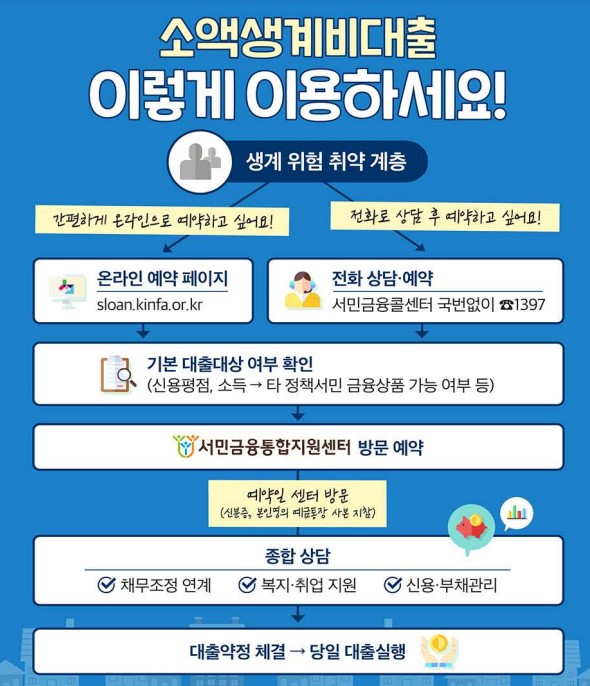 높아지는 물가에 경제적 어려움을 겪고 있는 시민들을 위해 연체, 소득유무 관계없는 생계비 대출이 시행된다고 하는데요. 매주 수~금요일 사전신청이 시작되니, 긴급대출을 원하는 분들께서는 꼭 신청하시기 바랍니다.